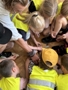 My responsibilities at the camp were to be attentive and communicate with the English teacher about the daily activities that were carried out, to help the children if they had any doubts about the activity, to organize the work materials for the next day, to make sure that the whole group was complete, to make sure all the children had their reflective vests on and that the children had their lunch and snacks in the afternoon.