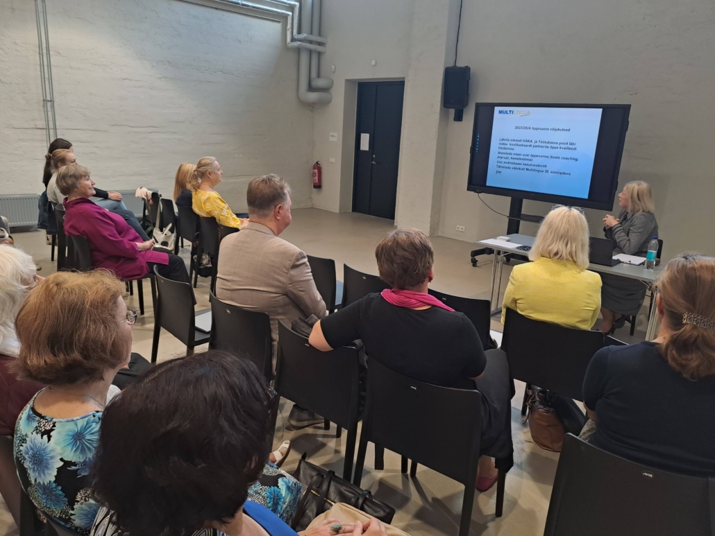 Tegime kokkuvõtteid möödunud õppeaastast ja vaatasime uude. Algaval õppeaastal on meil mitmeid uusi kursusi nii keeleõppijale (keele coaching, inglise keele pop-up tund veebis) kui ka õpetajale (kursus “Keeleõpetajast keele coach’iks. Esimesed sammud”). Multilingua rohevolikogu tegi ülevaatliku ja sisuka ettekande sellest, kuidas läheneme keskkonna säästmisele, kutsusime ka õpetajaid roheliselt mõtlema. Keele coachid rääkisid läbitud keele coachi programmist ja vastasid osalejate küsimustele. Huvi oli suur.