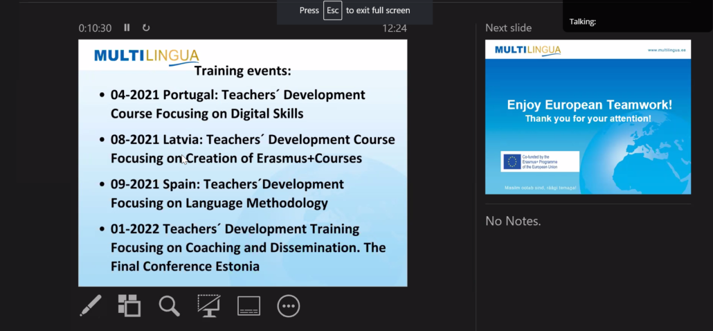 Multilingua juhtimisel pandi paika rahvusvaheliste koolituste esimesed sammud. Toimus nelja riigi virtuaalne avakohtumine